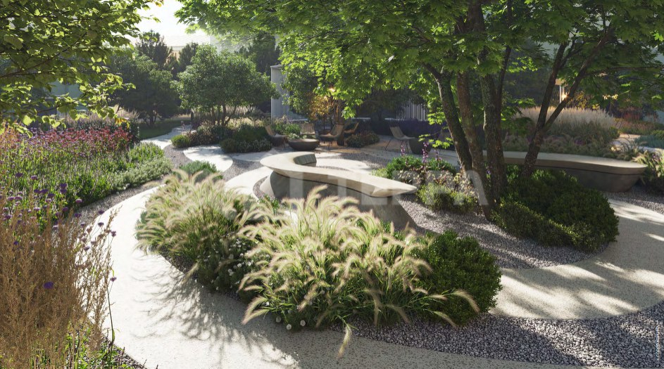 Самое просторное из мест для отдыха спрятано в центре двора, под раскидистым клёном. Тихие тропинки петляют между тенистыми пространствами для уединения, множество и разнообразие которых — главное достоинство секретного сада.