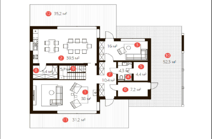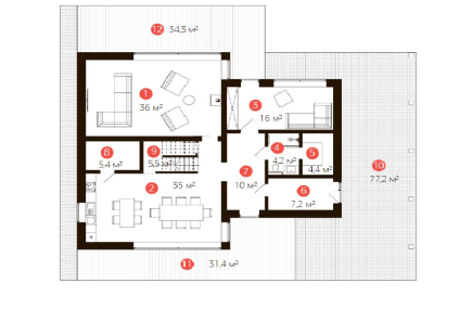 По площади дома: