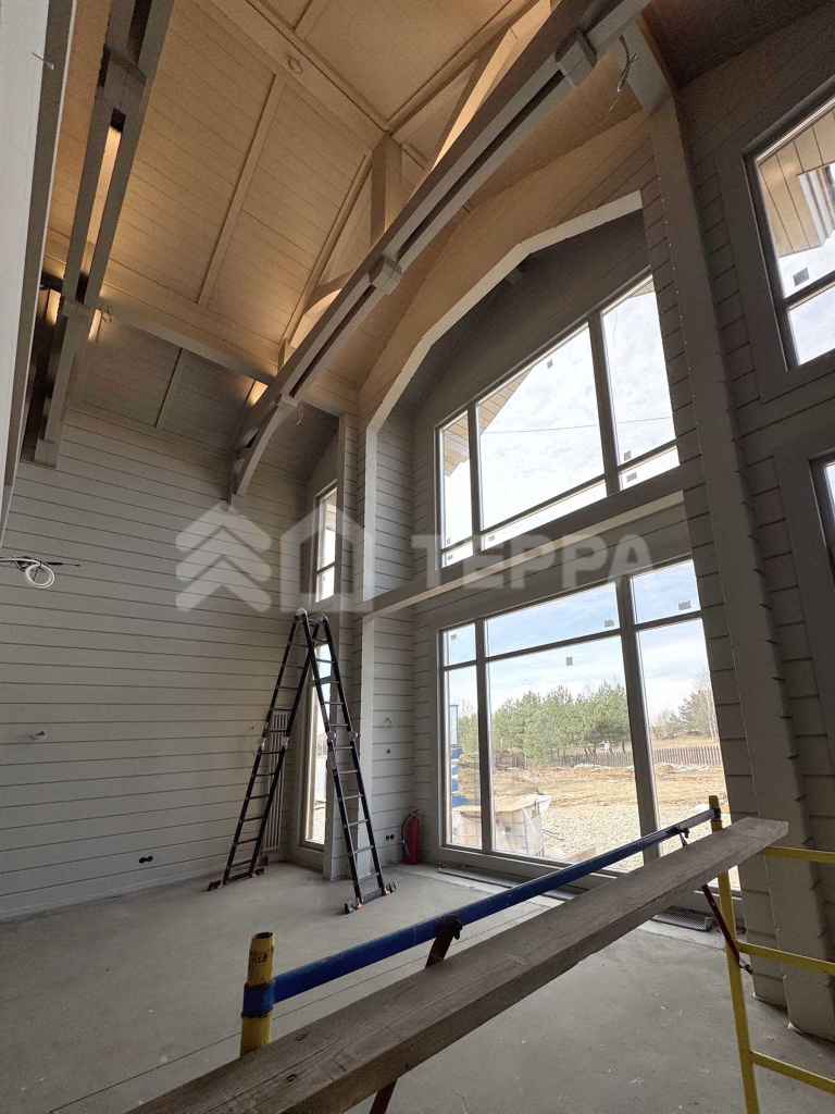 Сейчас в доме и на участке идут финальные отделочные работы. В ближайшее время буду выполнены на участке: подогрев дорожек , укладка тротуарной плитки, установка автоматических ворот гаража, въездных ворот и калитки. Внутри дома: укладка камня и плитки, укладка паркета, устройство и отделка камина, лестница, межкомнатные и входные двери. Застройщик: ПАЛЕКС - дома из клееного бруса.