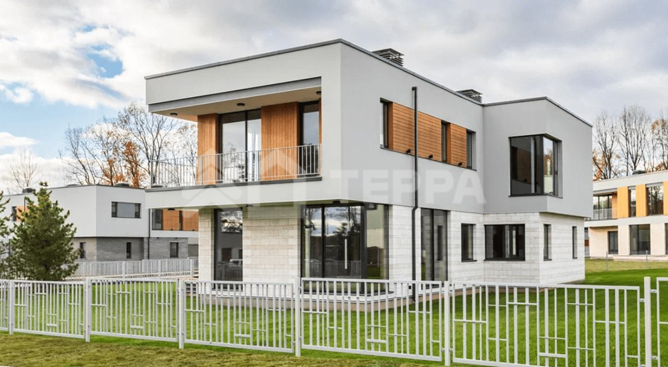 Дом с готовым облицованным фасадом (плитка/планкен/штукатурка) и интерьером под отделку. Все центральные коммуникация заведены в дом.