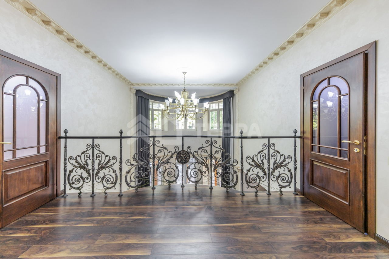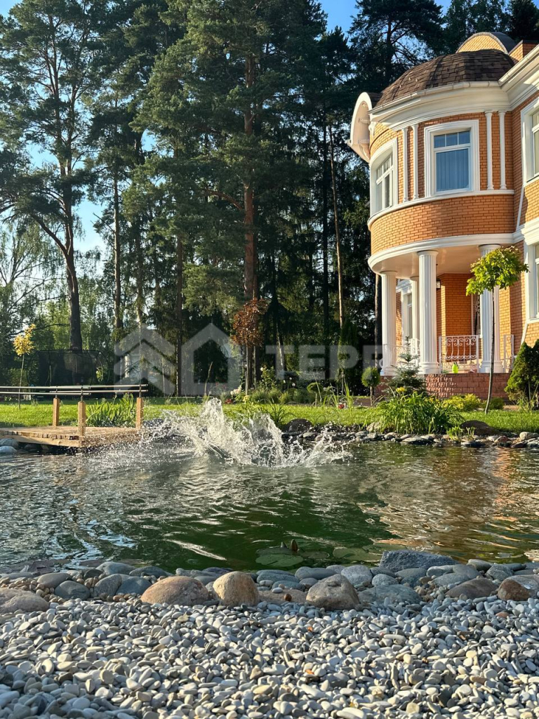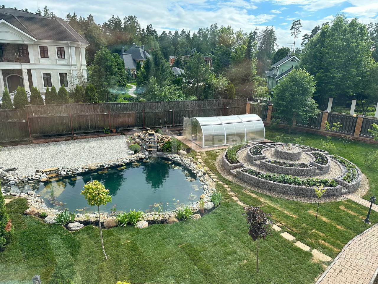 Участок состоит из большого лесного массива. На земельном участке выполнен ландшафтный дизайн, есть пруд с системой очистки воды, прогулочный сквер с освещением, спортивная площадка, теплица, гараж на 2 мм, отдельное помещение - квартира для персонала (2 спальни, кухня-столовая, санузел), помещение под дизельгенератор.