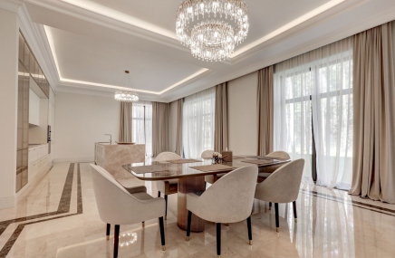 Современный дом общей площадью 1700 м2 расположен на участке 46 соток с реликтовым лесом и возможностью увеличения до нескольких га. Ультрасовременная архитектура, реликтовый лес, дизайнерская подсветка фасада, понорамное остекление, плоская кровля, высокие потолки, лифт, спа-зона с бассейном, сауной и хаммамом, отдельный блок для персонала и охраны, два гаража на 8 машиномест. Инженерия: системы - умный дом, снеготаяния, полива, кондиционирования, видеонаблюдения, услиления связи, стабилизации электричества, очистки воды, обогрева ливневой канализации, бесшовный Wi-Fi.