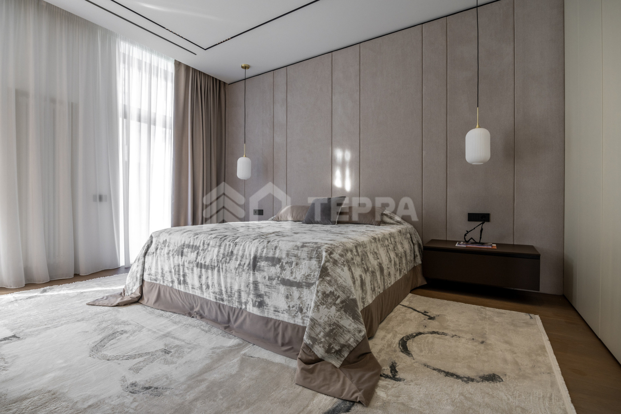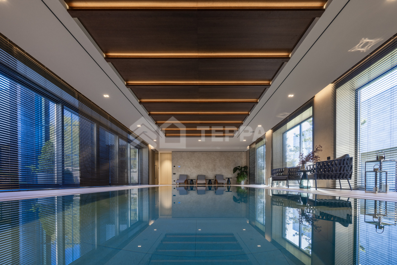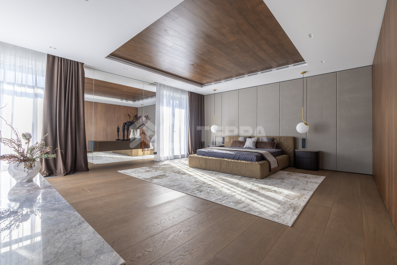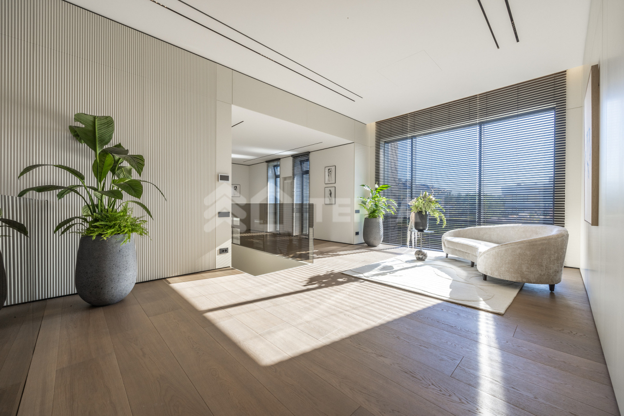 Просторная терраса, собственный бассейн и SPA-зона, понорамные окна и высокие потолки, отдельная квартира для персонала обеспечивает максимальный комфорт проживания.
