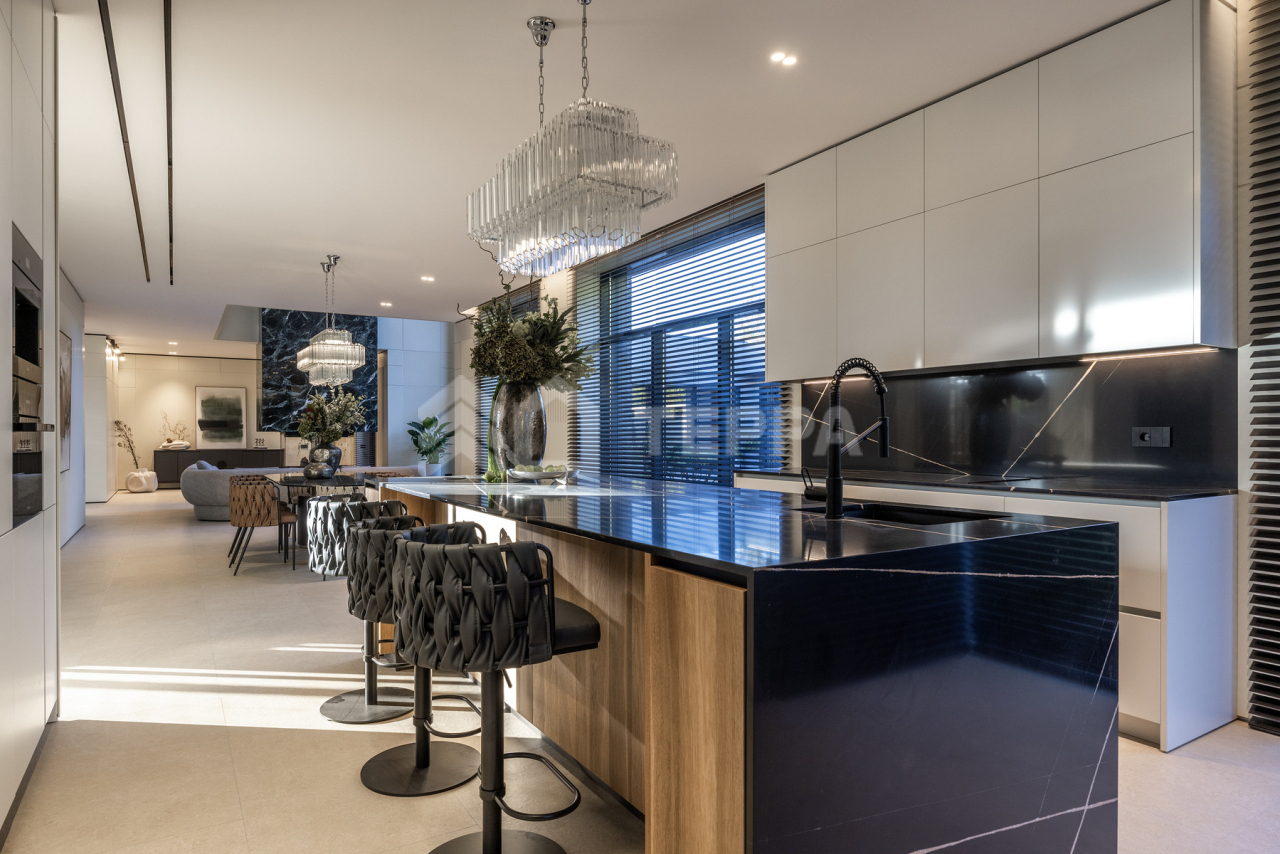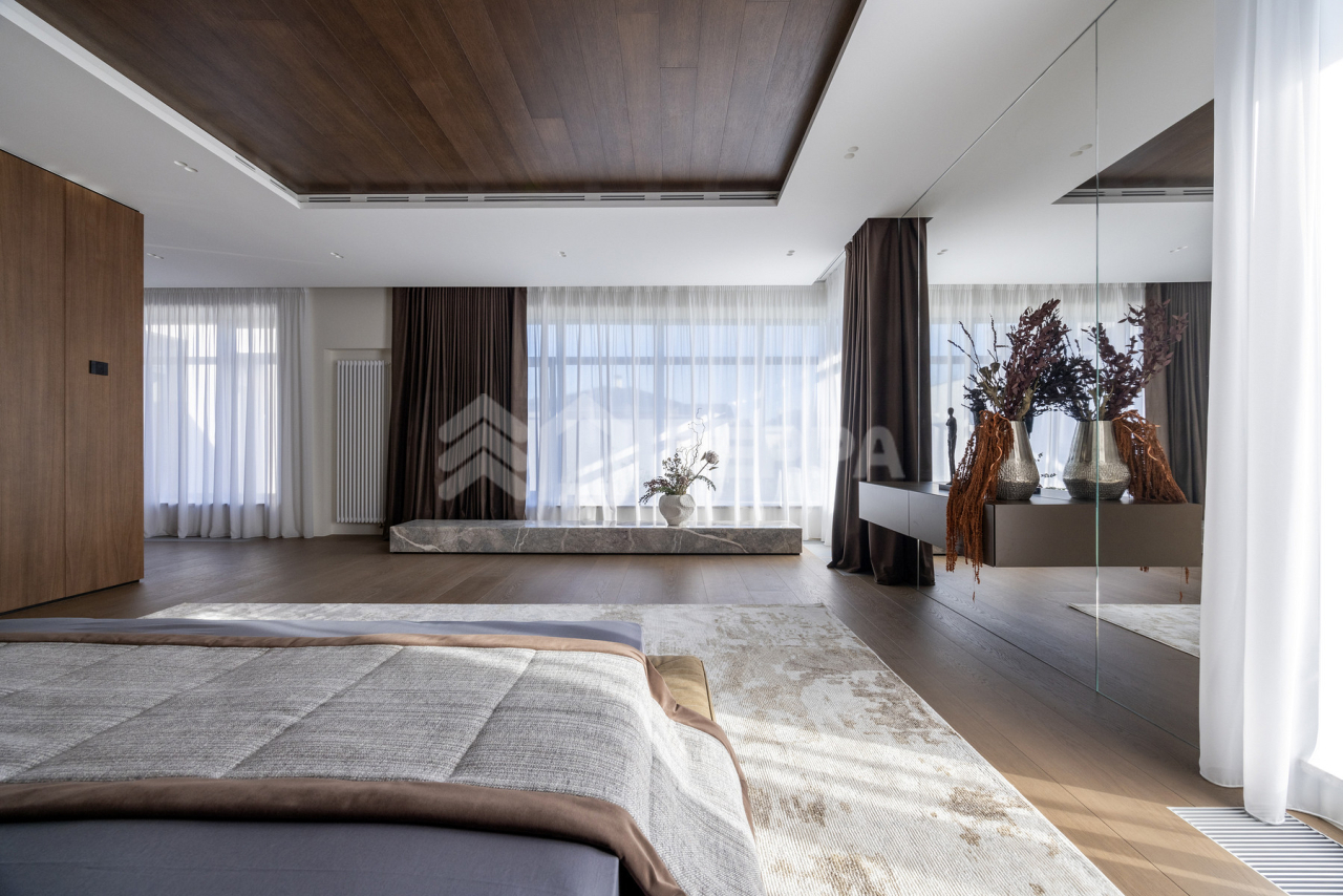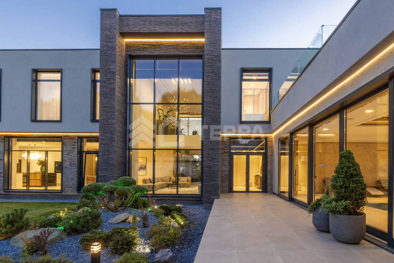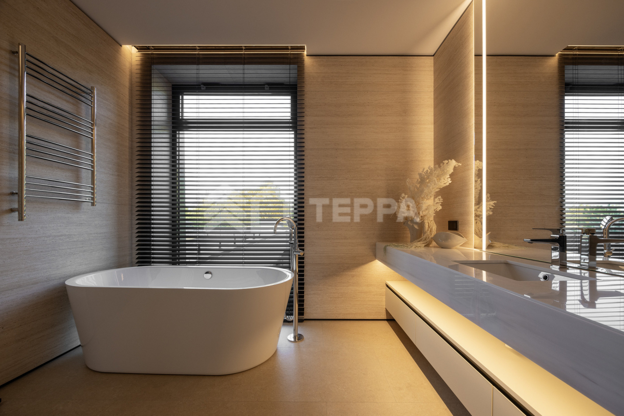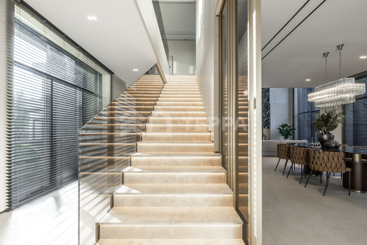 Просторная терраса, собственный бассейн и SPA-зона, понорамные окна и высокие потолки, отдельная квартира для персонала обеспечивает максимальный комфорт проживания.