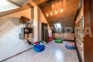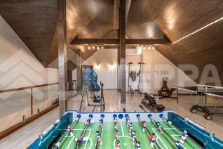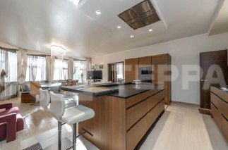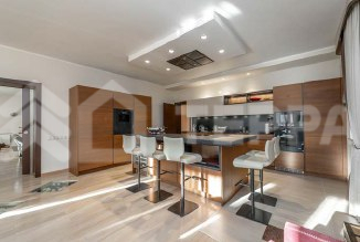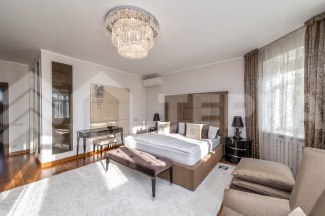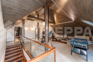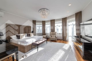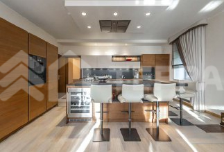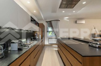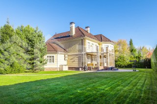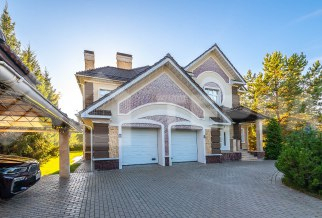 Для внутренней отделки использованы исключительно натуральные и высококачественные материалы, которые дополняются элегантной мебелью премиум-класса и современной бытовой техникой Gaggenau (Германия). Система освещения Martini (Италия) подчеркивает каждую деталь интерьера, а система кондиционирования Mitsubishi поддерживает идеальный микроклимат круглый год. Теплый гараж дополнен удобным навесом для автомобиля. Территория благоустроена, украшена декоративными растениями и окружена живым зеленым забором из высоких туй.