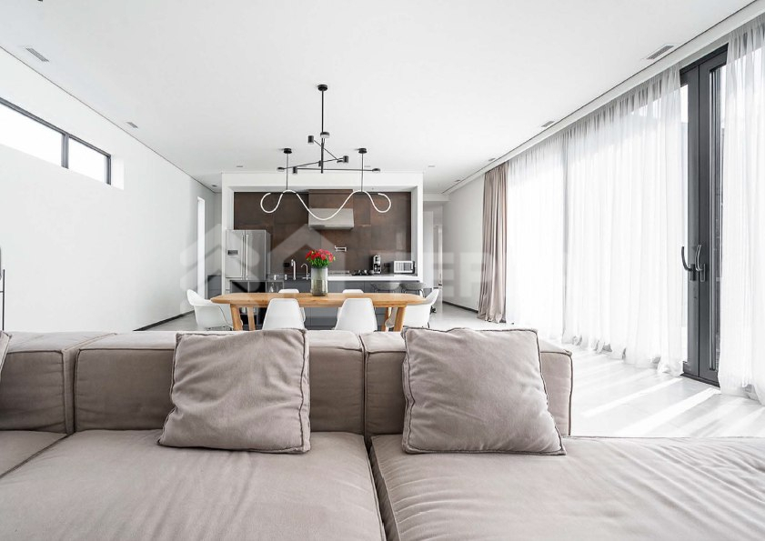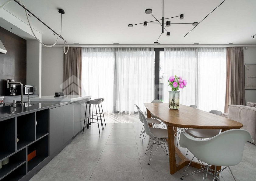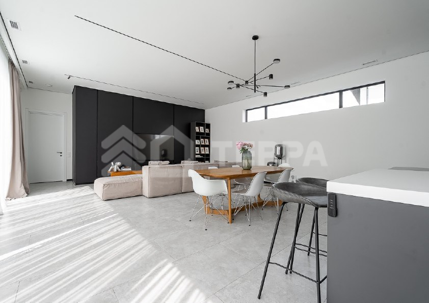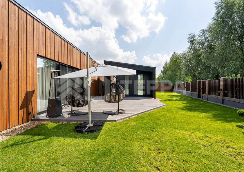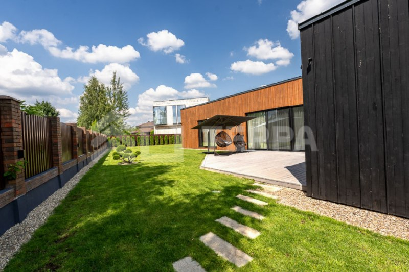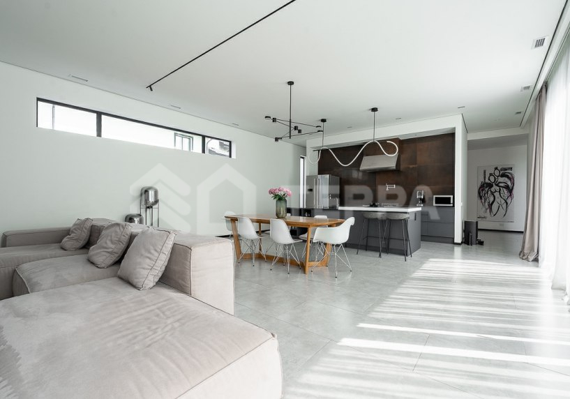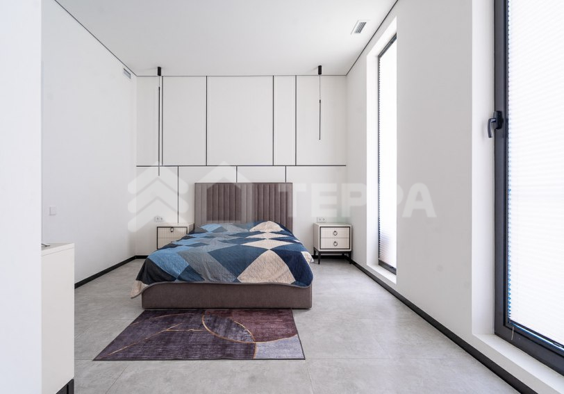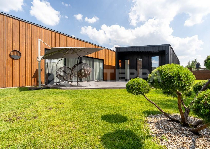 Одноэтажный загородный дом площадью 310 м? в современном стиле построен на участке 12 соток с выходом в парк КП "Новорижский". Дом меблирован и включает 4 спальни, зону кухни-гостиной, гараж на 2 автомобиля и постирочную. На участке выполнен ландшафтный дизайн с деревьями, кустарниками и газоном. Построен в 2023 году, дом энергоэффективный, что снижает эксплуатационные расходы. Установлена система "умный дом" для удаленного управления, современное отопление с водяным теплым полом и газовым котлом Buderus. Также предусмотрены системы вентиляции, кондиционирования и центрального пылеудаления.