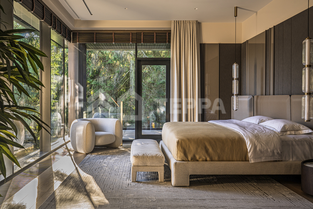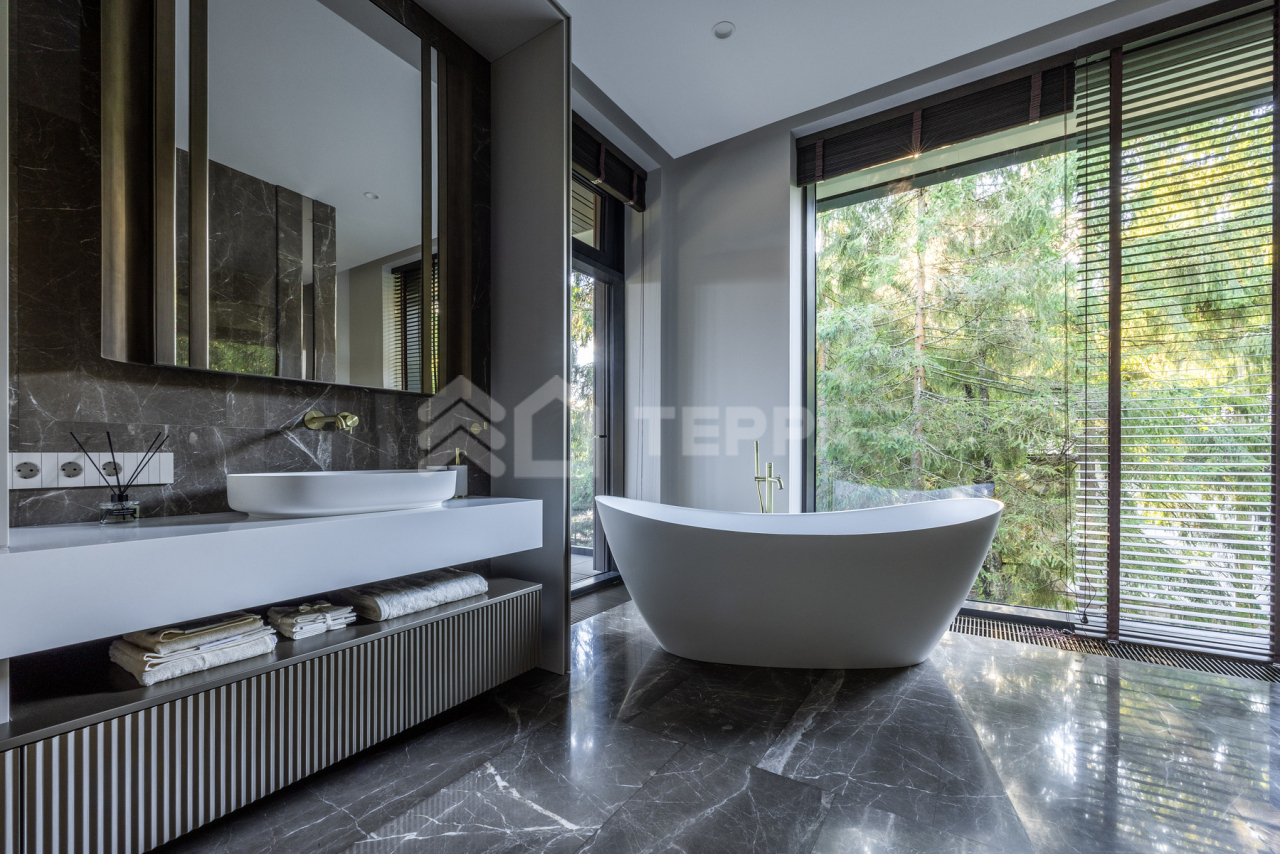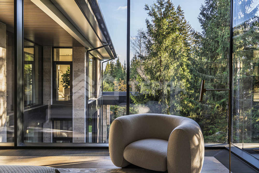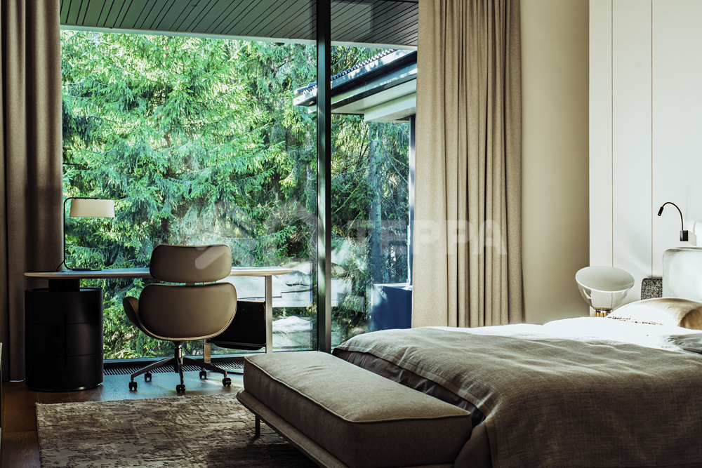 - мастер блок 130 кв.м. с панорамным структурным остеклением и разделением на мужскую и женскую зоны (2 гардеробные