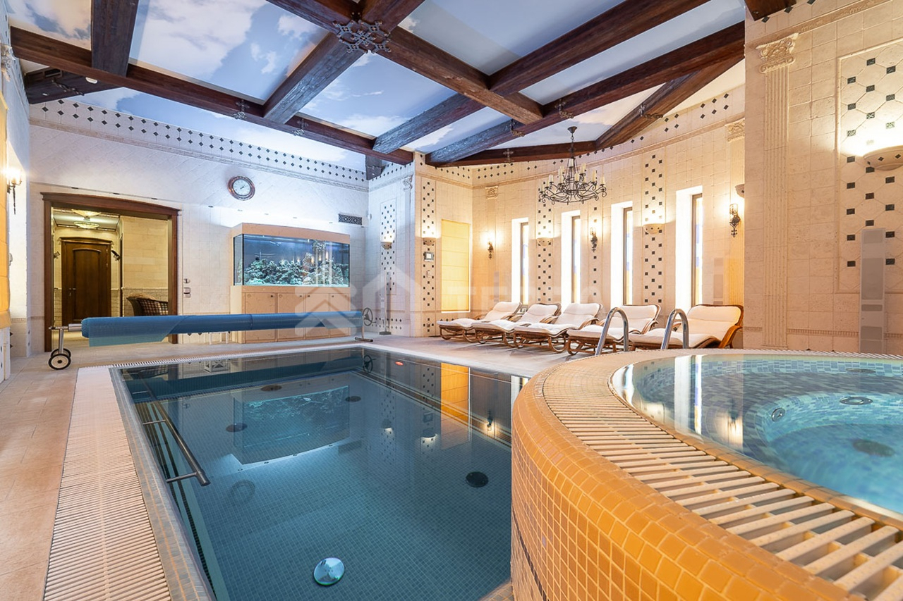 На учачтке дополнительно расположен Спа комплекс 220м.: бассейн, хамам, сауна, душевая, су, на 2й этаже бильярд, зона отдыха с мини-кухней. Мансарда: гостевой блок и зона отдыха.