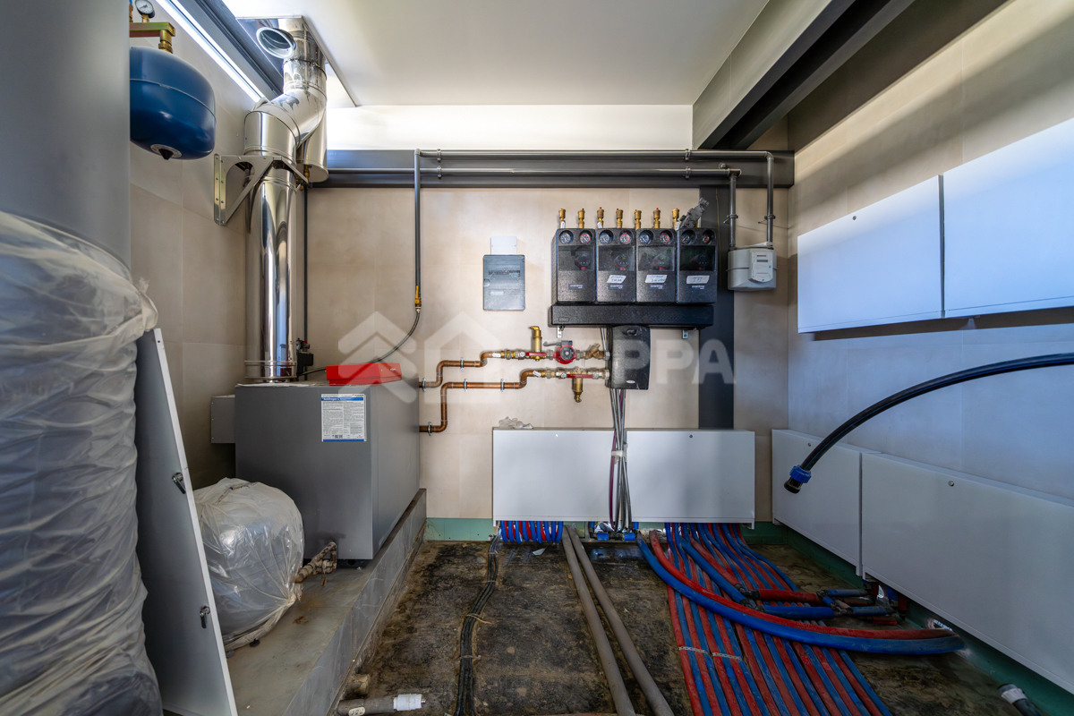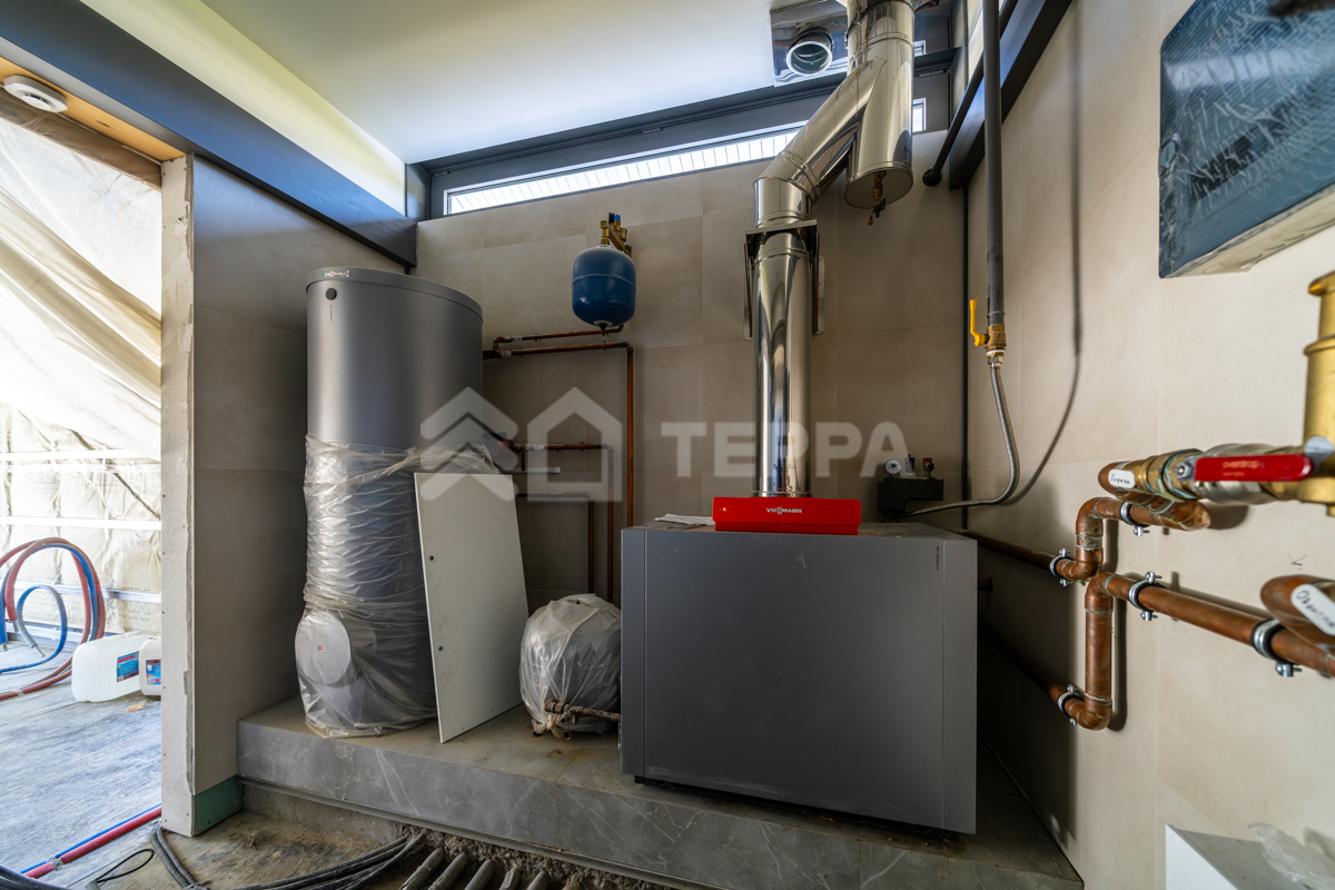 Комплекс строений площадью около 550 квадратных метров создан с заботой о комфорте. Все окна в доме изготовлены компанией Shuko, закуплено оборудование для кондиционирования от компании Mitsubishi, отопление и горячую воду обеспечивает газовый котел компании Veesman. Дом готов к финальной отделке.
