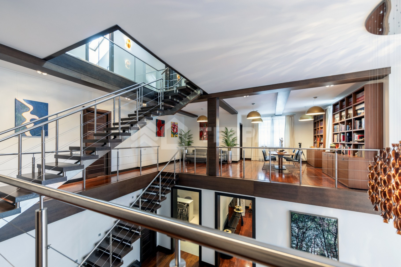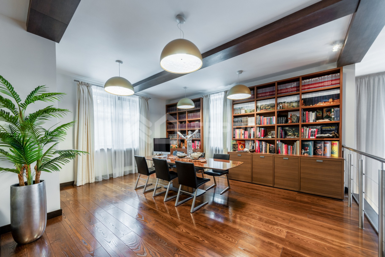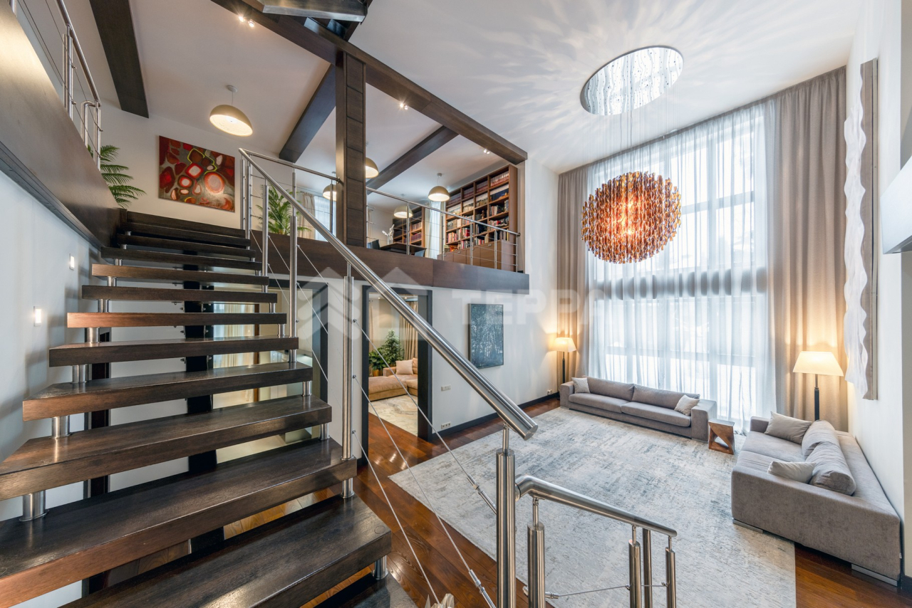 Дом общей площадью 650 кв. м расположен на участке 18 соток. Архитектурная идея построена на ощущении простора и естественного света: в доме реализован эффект второго света на всех уровнях, благодаря чему пространство выглядит особенно объемным и воздушным. Центральным акцентом интерьера стала эффектная «парящая» лестница - изящный архитектурный элемент, подчеркивающий современный характер резиденции. Сердцем дома является впечатляющая гостиная, вокруг которой выстроена вся внутренняя композиция пространства. Просторная, наполненная светом зона с высокими потолками и вторым светом создает атмосферу открытости и уюта одновременно. Планировочные решения продуманы до мелочей и создают баланс между общественными и приватными зонами. Особого внимания заслуживает мастер-зона: просторная мастер-спальня дополнена собственной гардеробной, ванной комнатой и будуаром. В доме также предусмотрена уютная библиотечная зона - идеальное пространство для чтения, работы и спокойного отдыха. На третьем этаже организована просторная детская территория - полноценное отдельное пространство для учебы, игр и отдыха. Гараж интегрирован в архитектурный контур здания, что обеспечивает максимальный комфорт в повседневной эксплуатации.
