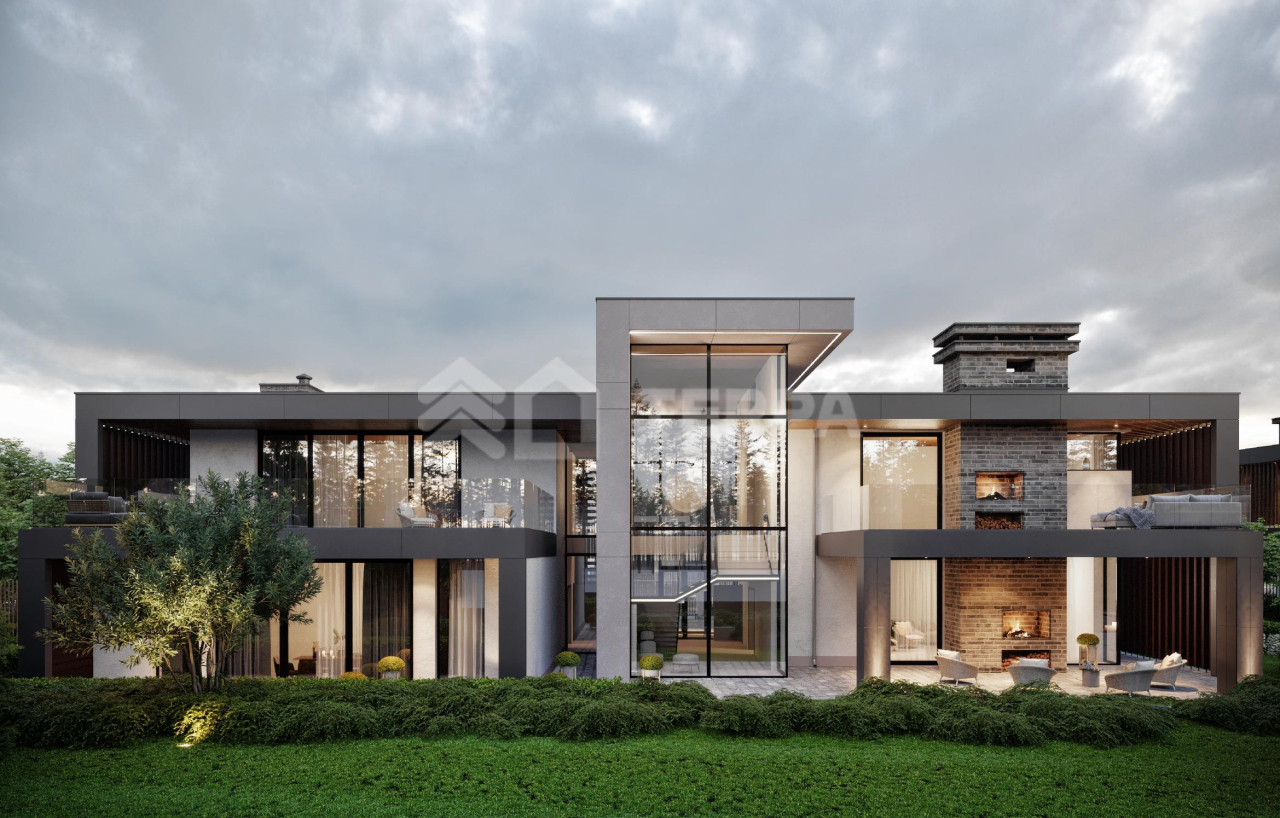 Абсолютно новый современный дом 1132 м2 под отделку расположен на приватном участке 24 соток.