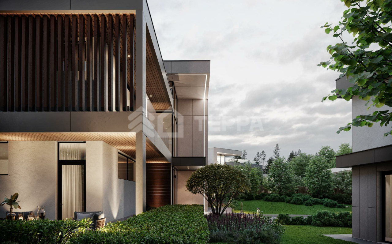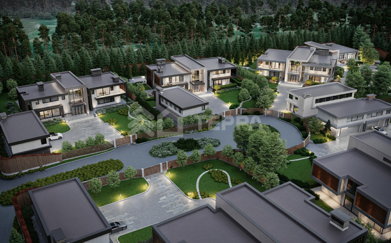 Клубный поселок рассчитан на 5 вилл с собственными СПА-комплексами (в зависмости от проекта), гостевыми домами и отдельно стоящими гаражами, в которых расположились аппартаменты для персонала.
