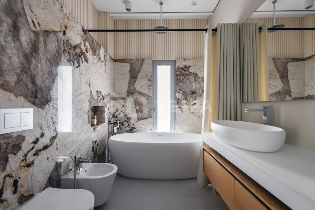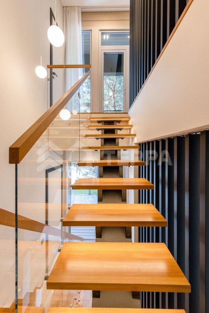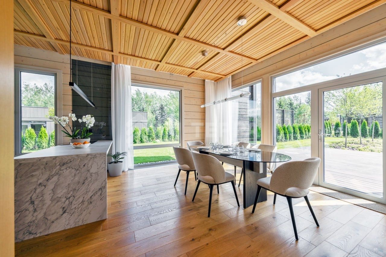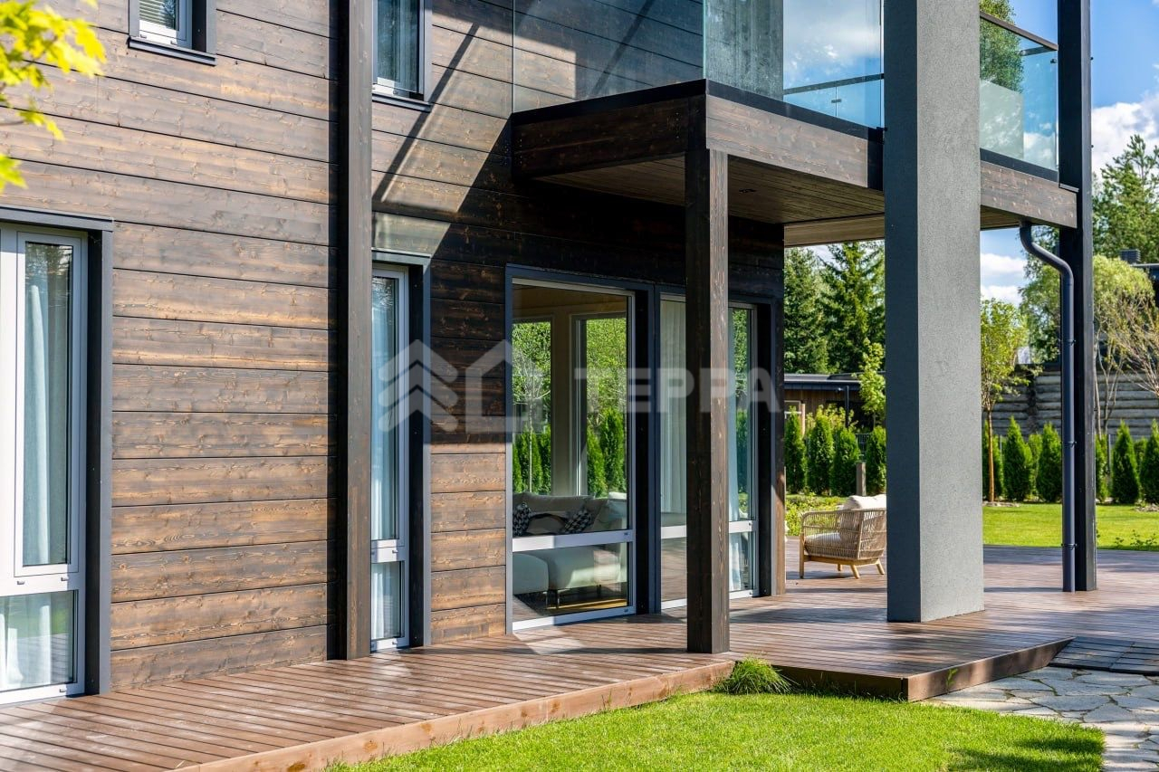 Двухэтажный дом премиум-класса в коттеджном поселке Gorki Lake спроектирован архитектором с мировым именем Matti Iiramo с учетом теневого проектирования. Дом построен из элитной финской ели по уникальной безусадочной технологии Nord Cross, единственной в России. Дом не требуют технического обслуживания, связанного с усадкой дома. Часть наружных стен выполнены из финских термо-модулей Concrette™, имеющих утепленную трехслойную бетонную структуру (технология разработана в Финляндии, имеет лучшие экологические и теплотехнические показатели, сегодня признана лучшей на рынке каменных домов). Дом утеплен по стандарту, превышающему СНиП в 1,5 раза. Панорамные двухкамерные алюминиевые энергоэффективные окна с климат контролем. Деревянные финские двери Kaski с системой климат-контроля. Итальянский стиль интерьера: дизайн и комплектация разработаны итальянским архитектором Fabiano Vidussi.
