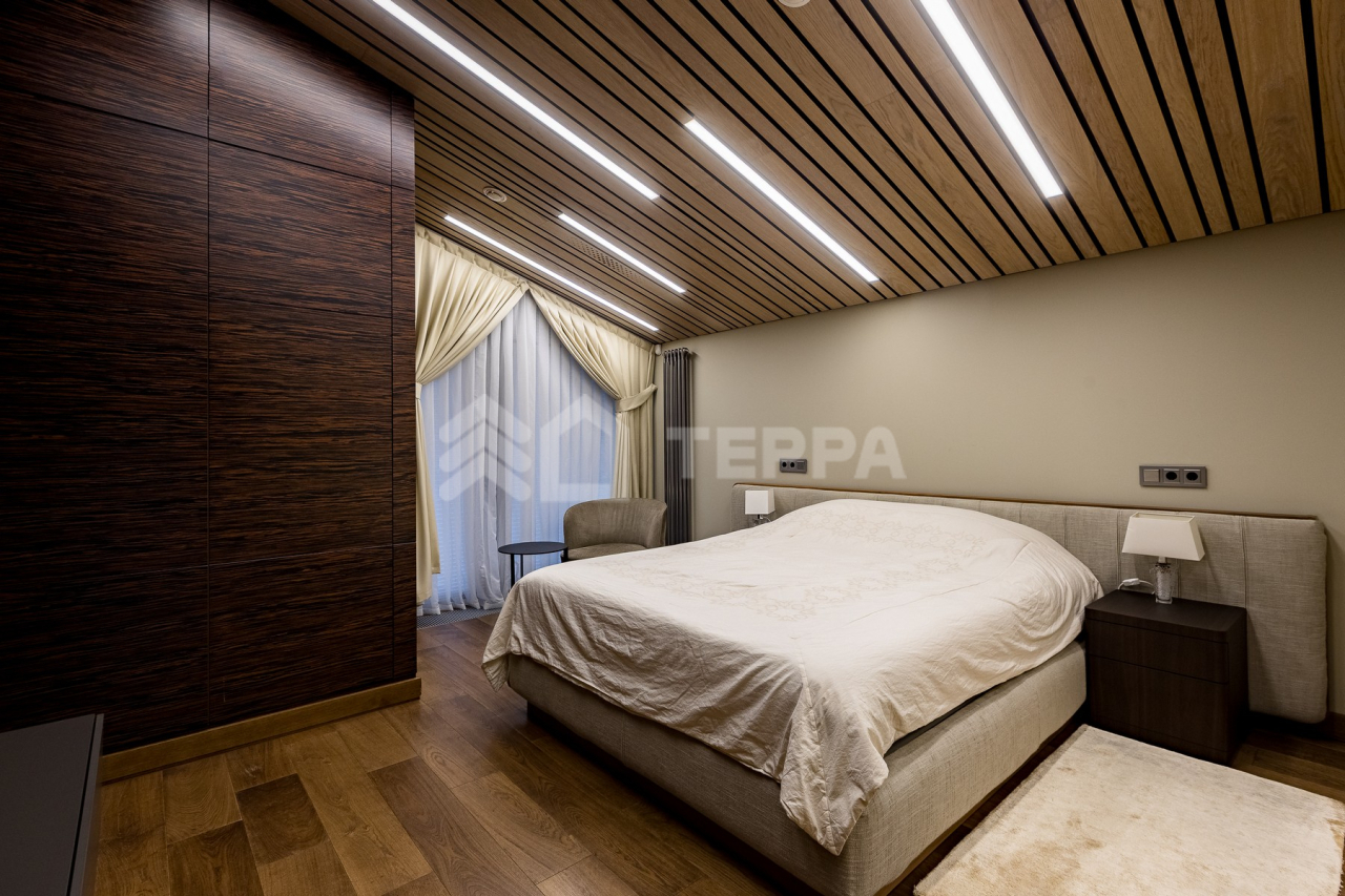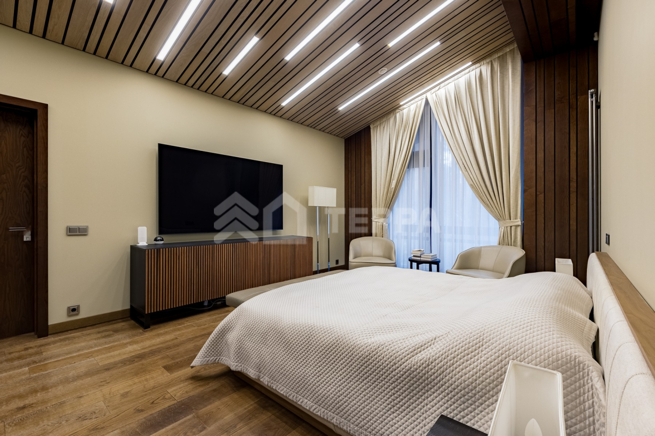 Особенность дома: просторные помещения с продуманным функционалом, включая собственный лифт, элегантный кабинет, четыре спальни с отдельными санузлами, двухкомнатную квартиру специально обустроенную для проживания обслуживающего персонала, гараж на два автомобиля, благоустроенную парковочную зону, просторную террасу с барбекю. Участок площадью 20 соток с профессионально разработанным ландшафтным дизайном.