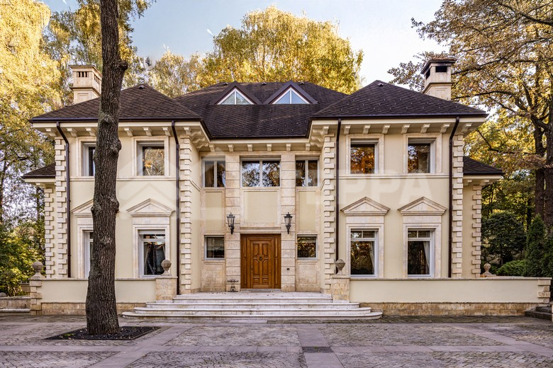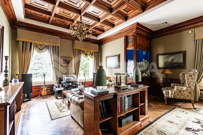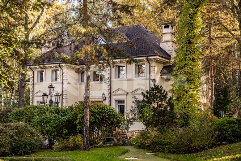 На первом этаже основного дома, общей площадью 784 м2 общественные зоны плавно перетекают друг в друга. Второй этаж предлагает уединение в трех спальнях с индивидуальными гардеробными и санузлами, а цокольный уровень открывает мир релаксации с бассейном, SPA-комплексом и кинозалом. Мансарда с просторной детской зоной завершает эту совершенную композицию. Интерьеры, созданные под руководством архитектора Екатерины Григорьевой, несут в себе философию Джона Саладино. Основой концепции стала его философия «хода времени», воплощенная в интерьере через включение антикварных предметов и искусства, которые, подобно живой ткани, связывают прошлое с настоящим.