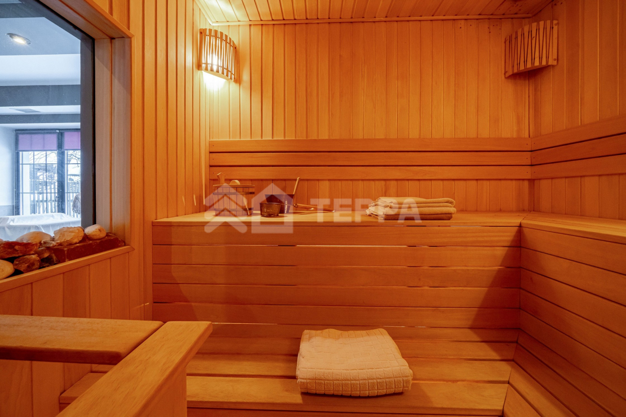 Площадь дома составляет 633 метра, состоит из 5 спален, каминной с выходом на террасу, кухней-столовой, балконами с прекрасными видами и спа блоком. Участок на 14 сотках прямоугольной формы с ландшафтным дизайном.
